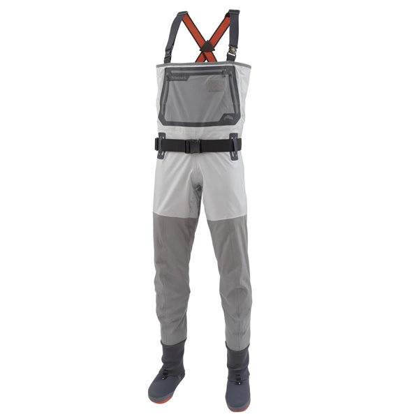 De G3 Guide Stocking Foot Wader van Simms is perfect voor het wadend vissen en het vissen vanuit een bellyboot. De G3 Guide Stocking Foot Wader is voorzien van drie zakken op de borst welke met een rits afsluitbaar zijn. De bovenzijde van het waadpak is gemaakt van drie lagen Gore-Tex, de broekspijpen zijn gemaakt van vier lagen Gore-Tex.