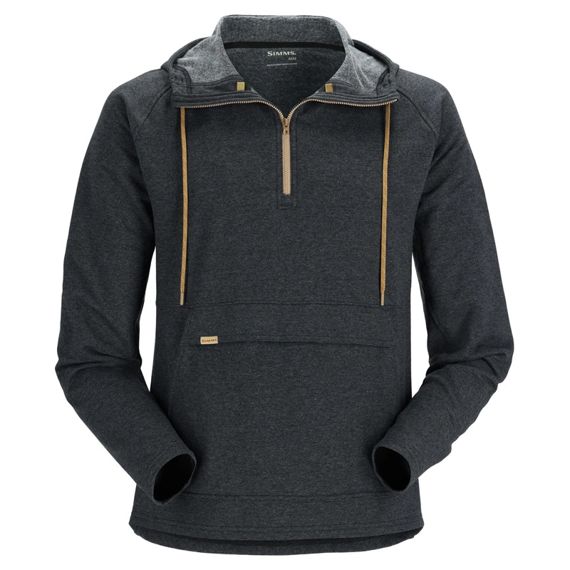 De Simms Vermilion Hoody Black Heather is een warme hoody van gerecycled en biologisch materiaal. Een knusse en stijlvolle trui van rekbare stof met kleine, slimme details die hem elke cent waard maken!